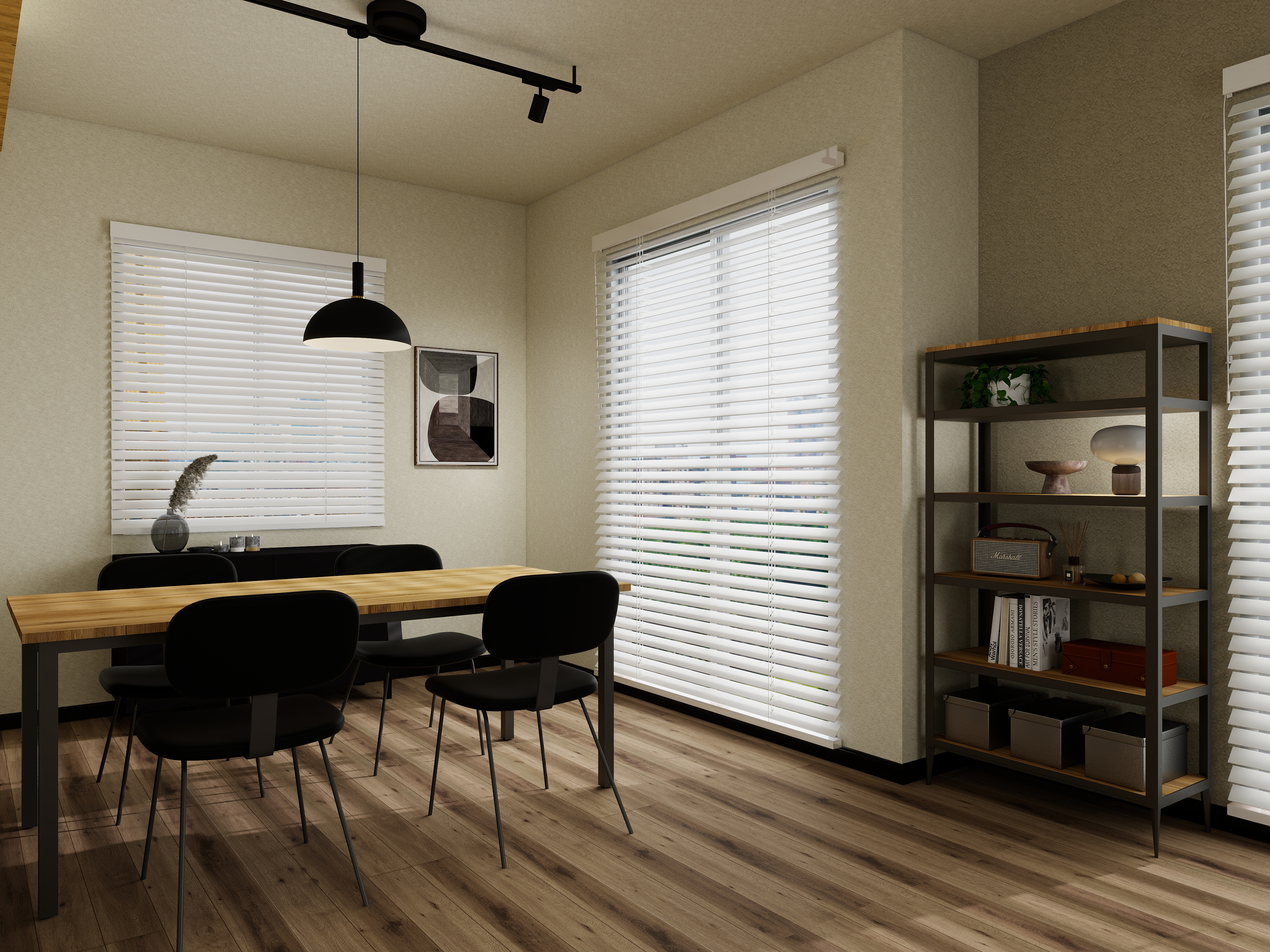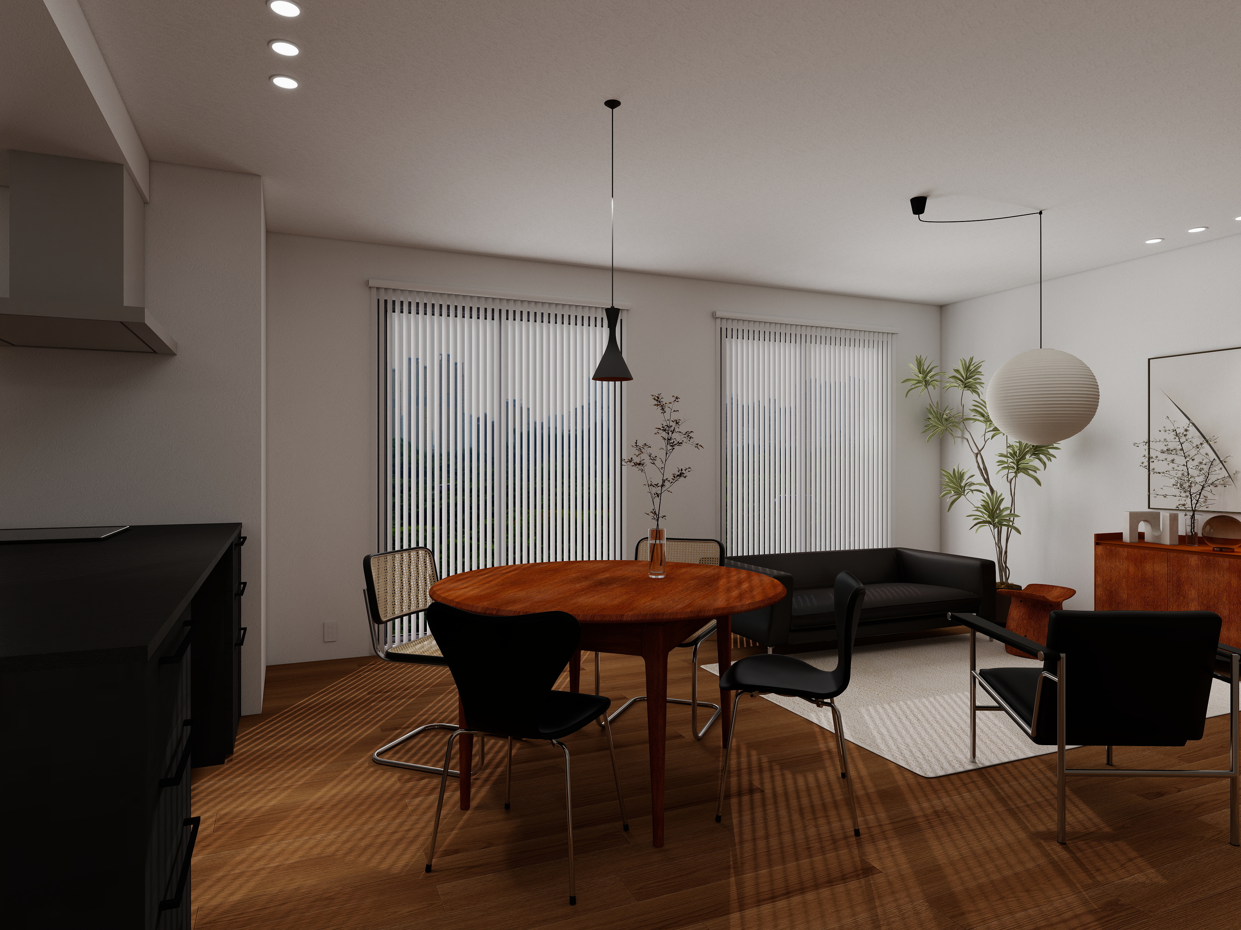 図面だけでは見えない広がりや光の陰影、素材の質感までをフォトリアルに再現。