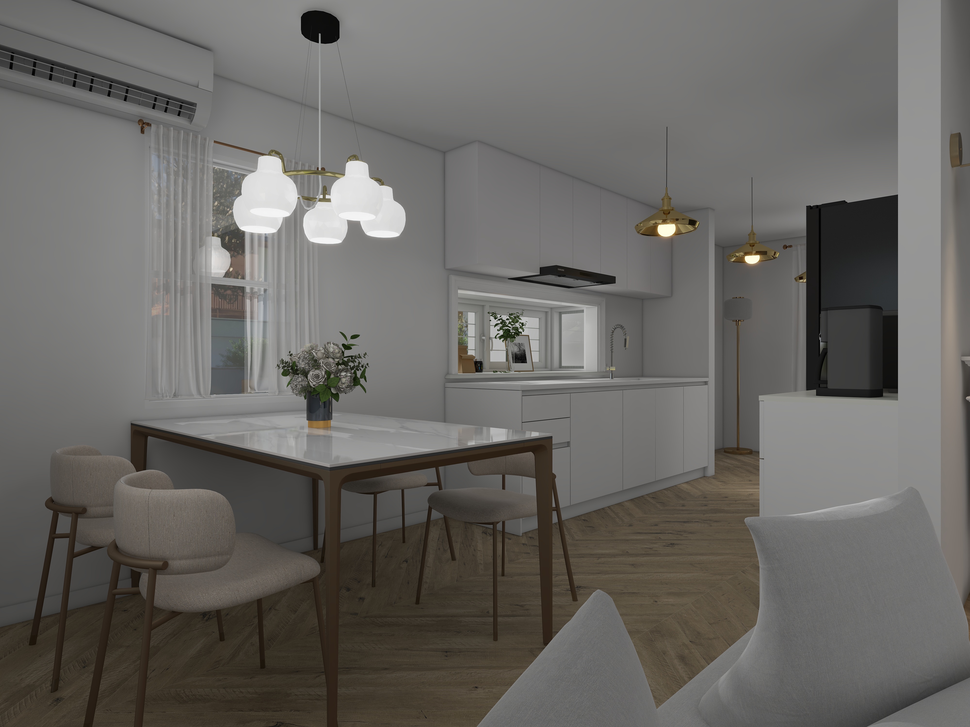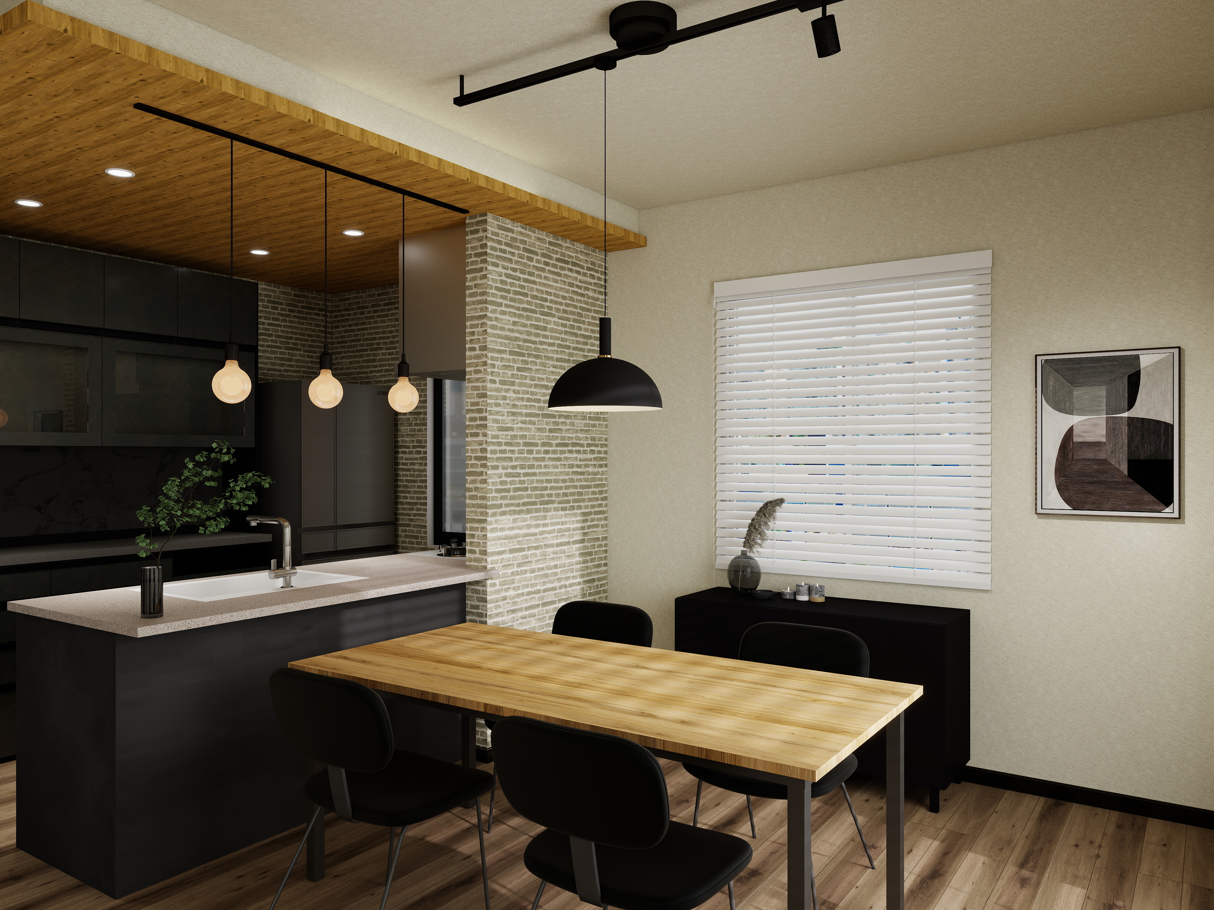 S様 / 女性キッチンに合わせてリビングの壁紙イメージを提案していただき、自分たちの好きなイメージを見つけることができました! 納期も適切で安心してやりとりできました。丁寧にクオリティの高い3Dパースを作って頂ける方でした!