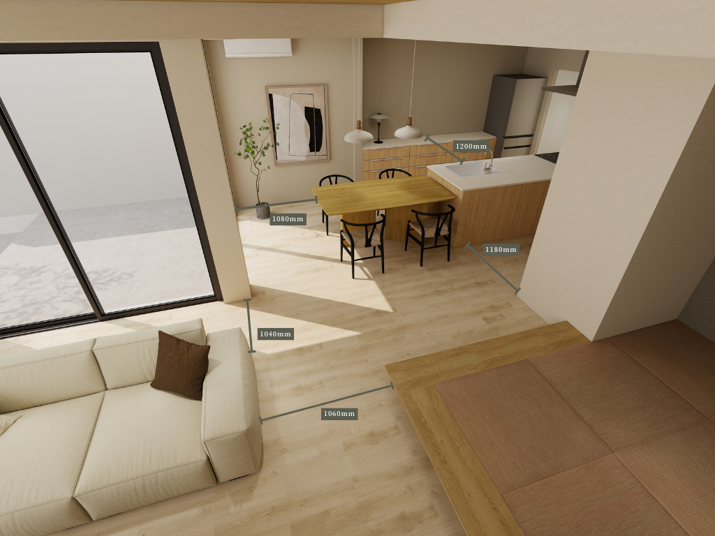 YOSUGA INTERIOR STUDIOは空間の雰囲気や光の広がりなど、言葉では共有しづらい要素を3DCGでわかりやすく示し、選択に自信を持てるようサポートいたします。