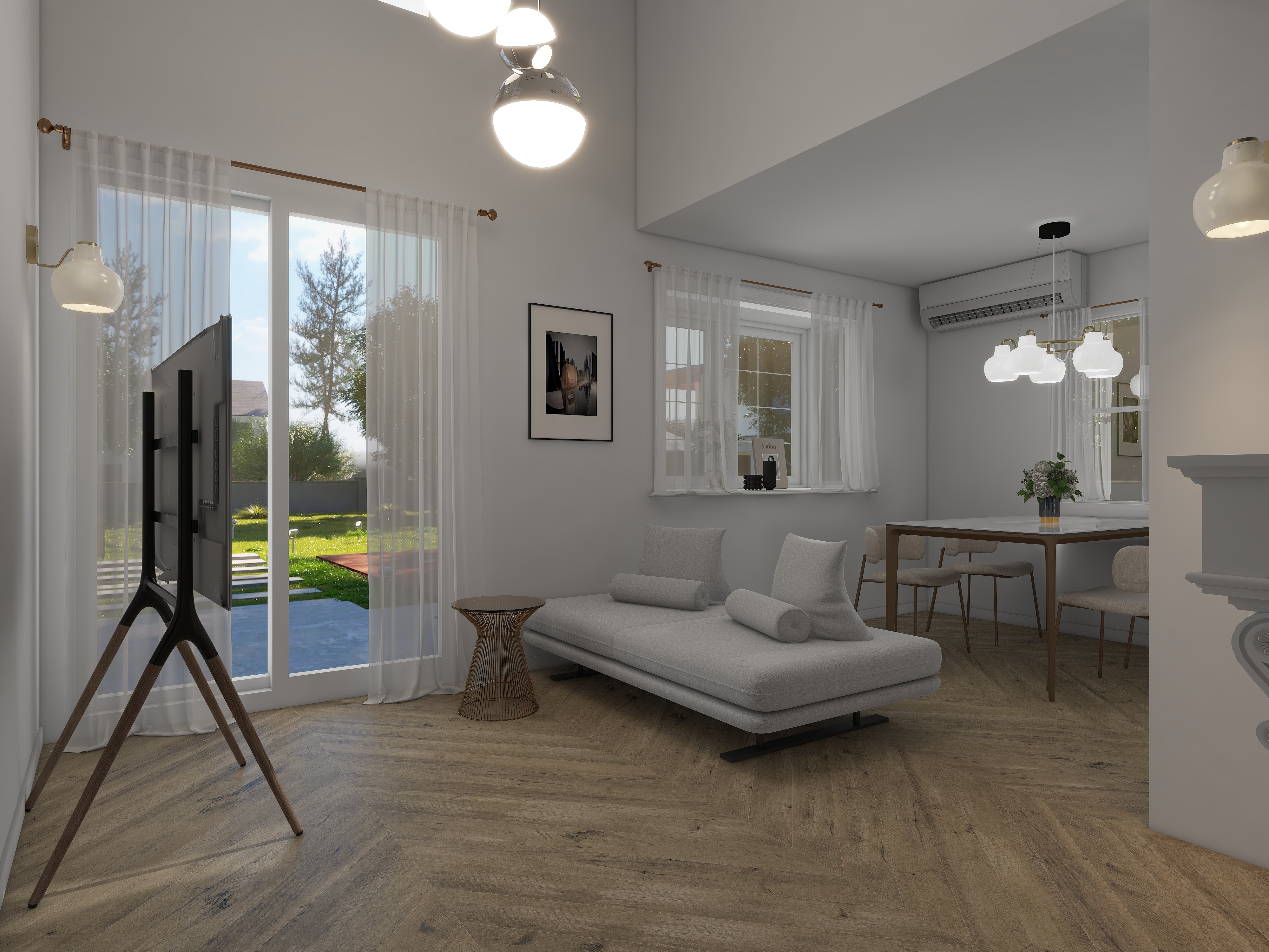 図面だけでは見えない広がりや光の陰影、素材の質感までをフォトリアルに再現。